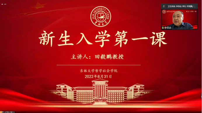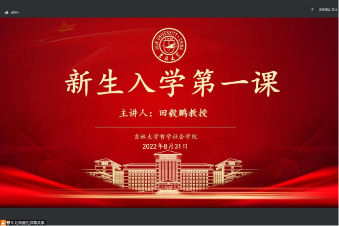 随后,院长田毅鹏教授为同学们授课。他向各位同学介绍了学院发展史。从1958年一批“立志向北”和“充满锐气”的中青年知识分子,齐聚于祖国的白山黑水之间,满怀豪情壮志,克服重重困难,建立了吉大哲学学科;1988年,在改革开放后社会学学科重建的第一波浪潮中,91国产