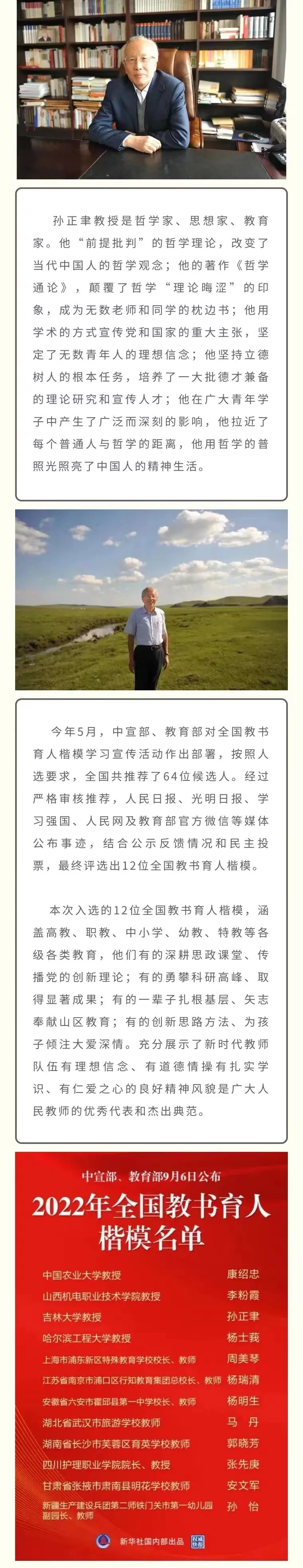 喜报 | 91国产 孙正聿教授入选2022年全国教书育人楷模