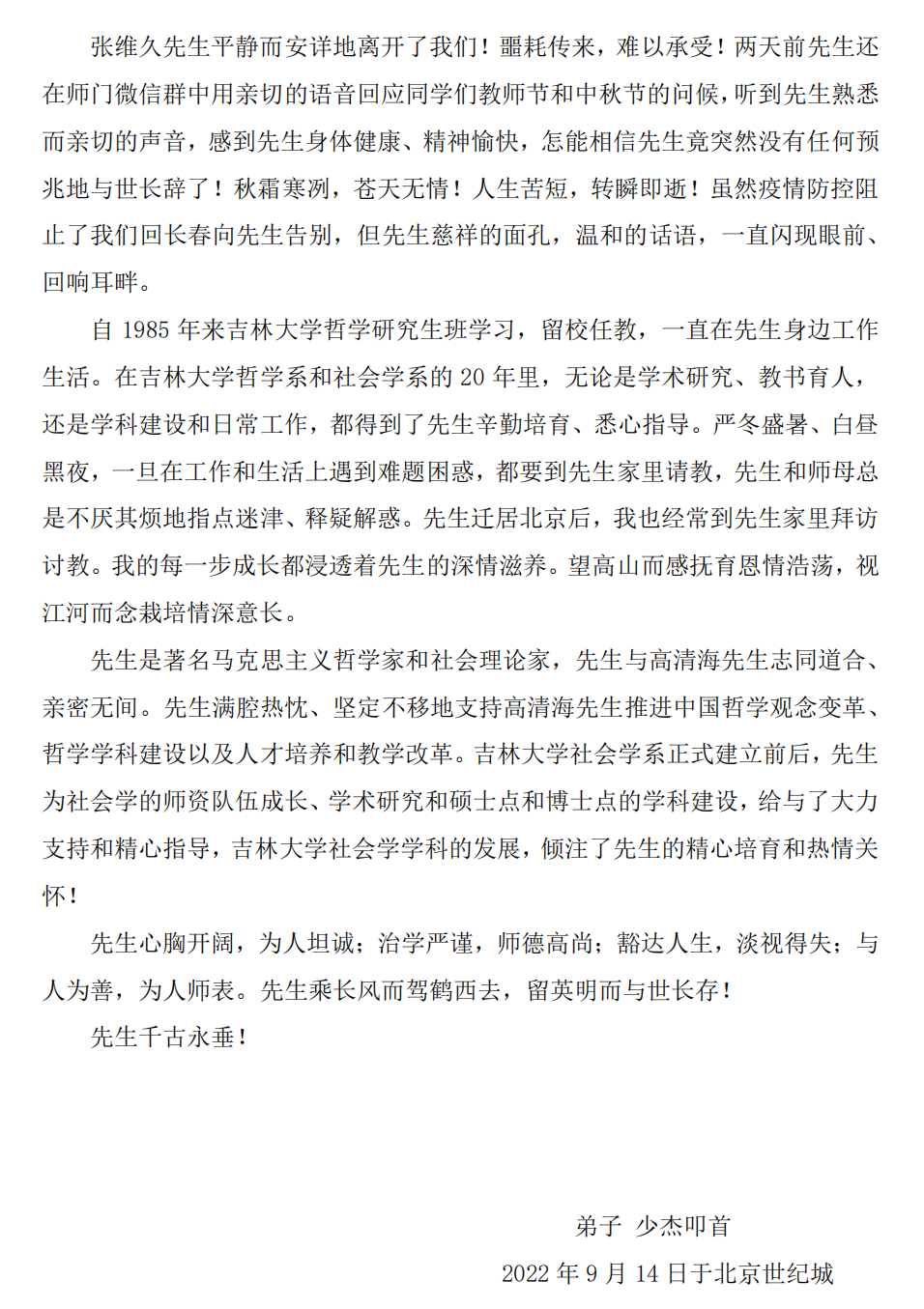 沉痛悼念敬爱的张维久先生!