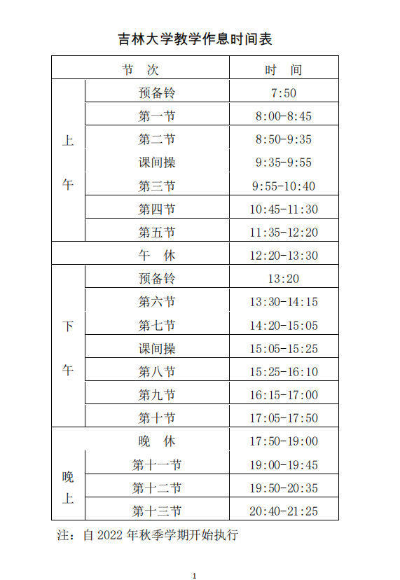 新教学作息时间自2022年秋季学期开始执行,请各学院、各部门及时传达全体师生员工(含外聘教师),严格遵照执行并做好各项准备工作。