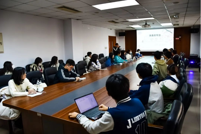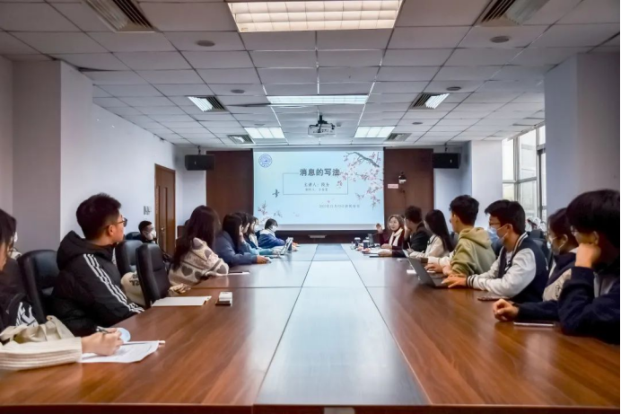 2022年11月3日下午,学生综合素质提升工程系列活动之(三)新媒体与宣传中心技能学习交流会在东荣大厦908举行。本次活动邀请了我校党委宣传部段为老师,为大家作“消息的写法”为主题的新媒体技能学习指导讲座。