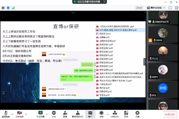 学生会主办的保研经验分享会在线上如期举行。本次分享会邀请到了五位成功保研的师兄师姐,分享自己的成功保研经验,为同学们之后的学习之路提供借鉴。