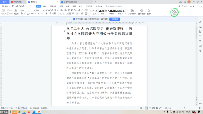 随后,孙一奥同学为参会人员进行了公文写作的相关培训,主要从公文写作的格式和注意点两方面进行讲解。