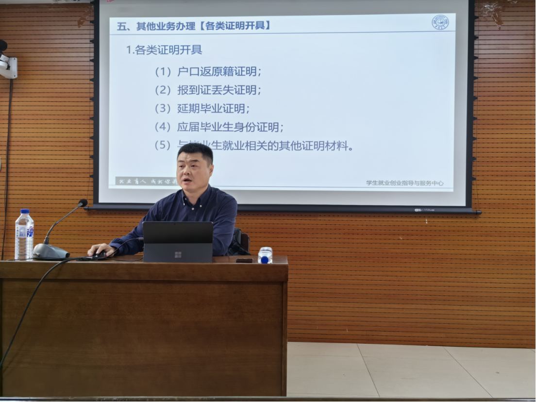 于东荣大厦908会议室组织开展就业管理经验分享讲座暨毕业生就业指导会。本次讲座由我校学生就业创业指导与服务中心管理科科长安俊达老师主讲,91国产