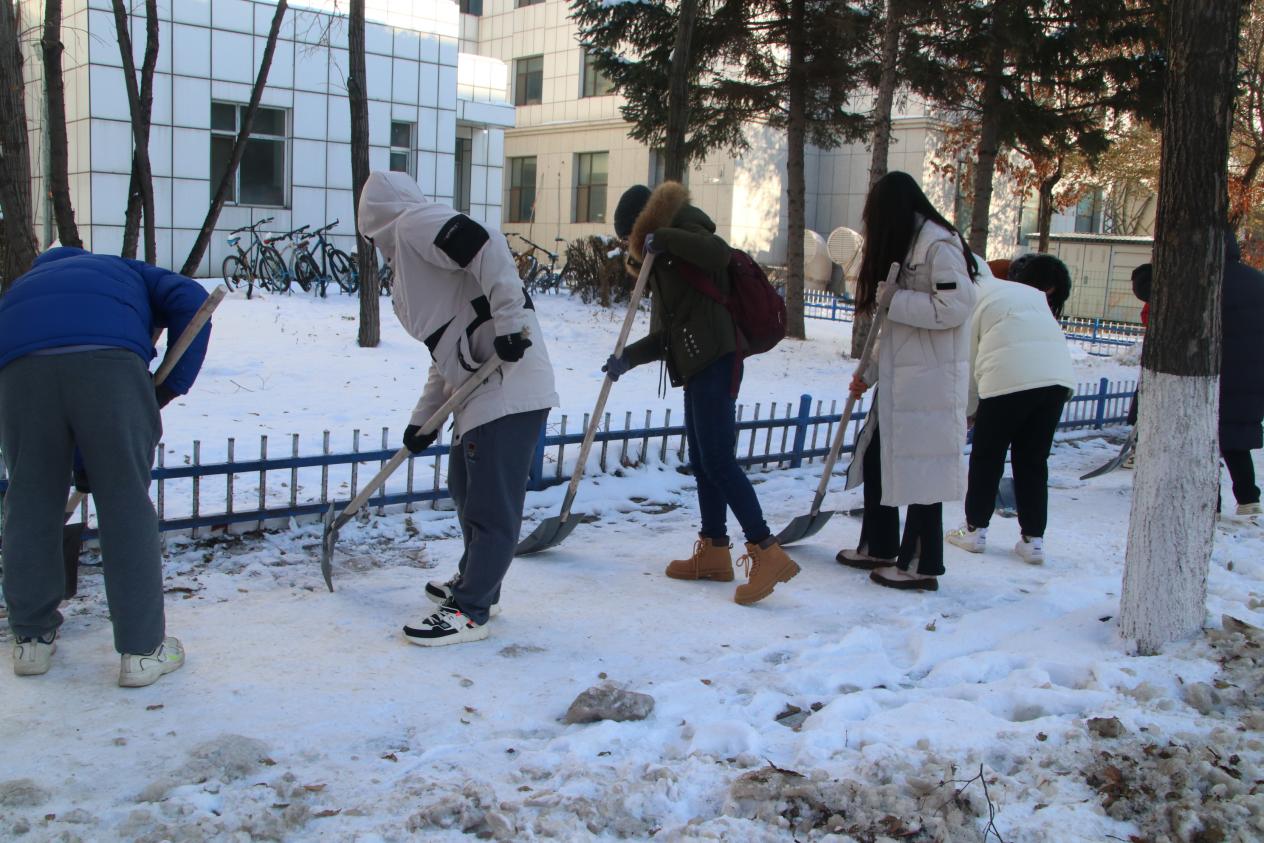 为了确保清扫工作安全高效开展,同学们根据事先制定的计划,从工具领取、物资发放以及现场调度等多方面进行了详细分工。在清扫过程中,同学们积极沟通、互相关心,不畏严寒、全情投入。天寒而不寒人心,同学们配合默契,以实际行动彰显了哲社学子的责任与担当。一道道忙碌的身影,成为银装素裹的校园中靓丽的风景线,让寒冬变得格外温暖。