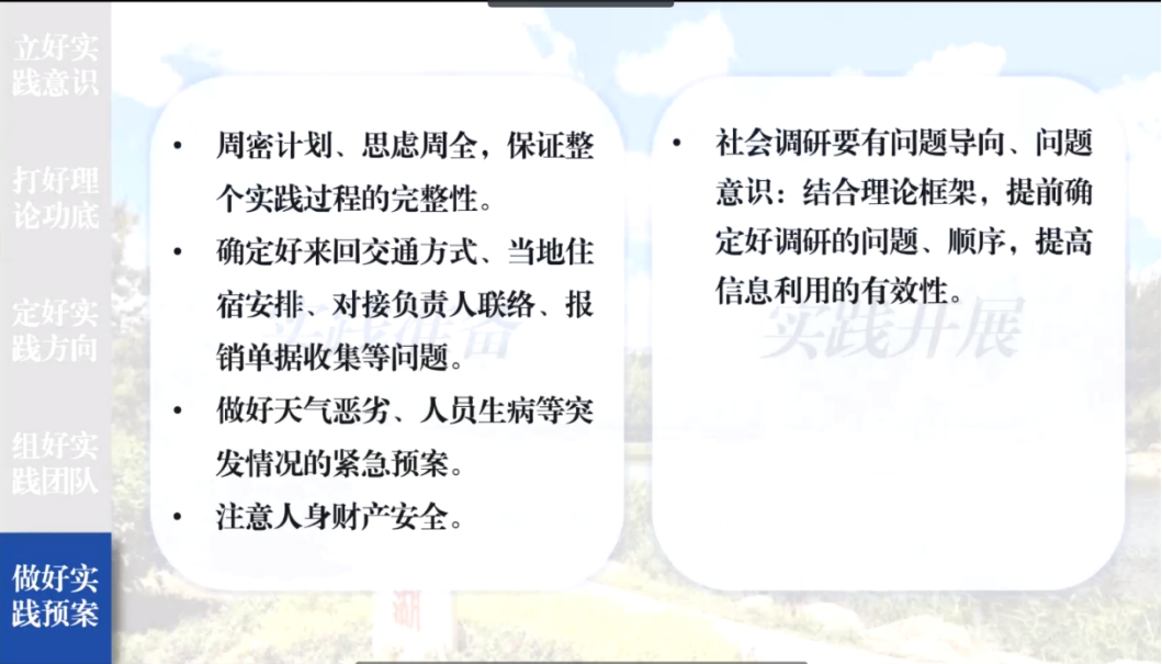 劳动与社会保障专业2021级本科生房安国同学的分享则分为前提背景,经验分享,方法总结三大板块。并从个人角度出发,举例说明实践活动中常见的问题处理方式。