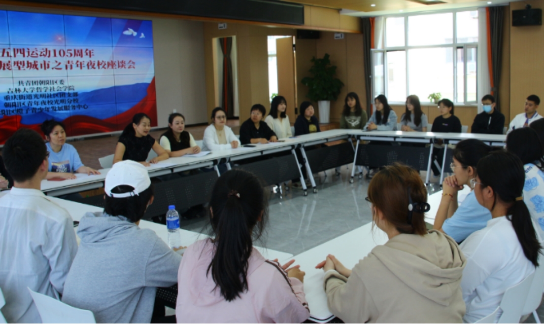 座谈会上,团朝阳区委书记孙哲、社区党委书记刘华宇以及社区团员干部与志愿者同学们进行交流,从青年自身发展与五四精神深度融合的角度出发,讲述了自身对于青年人在青年夜校建设中应有的责任与担当的生动理解,并希望同学们能够充分发挥自己的聪明才智,为建设青年发展型城市贡献学子力量。