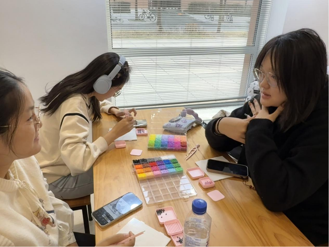 接下来,同学们纷纷投入到拼豆的制作中,大家先在网络上寻找了自己喜欢的样式,随后便拿起工具,沉浸在制作拼豆的乐趣之中。图案成型后,大家拿着熨斗小心烫熨,一个个独一无二的拼豆作品就此诞生。