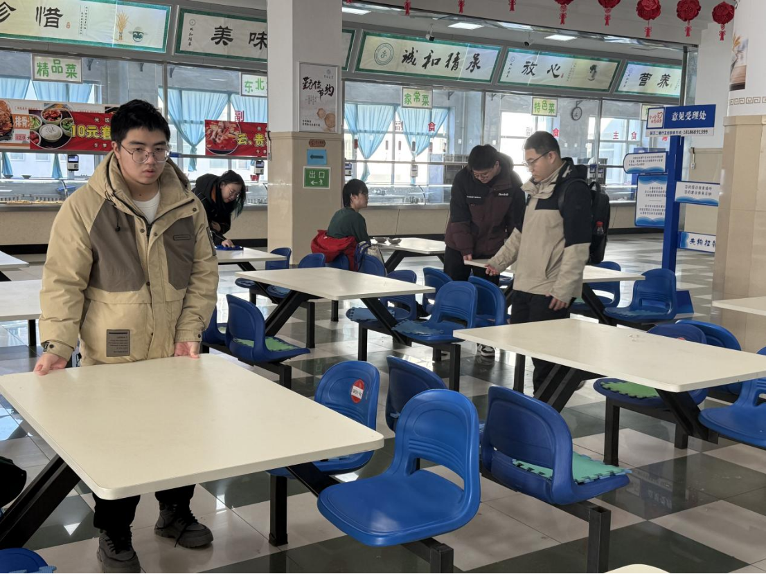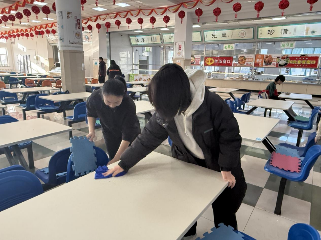 在清扫的过程中,同学们相互配合,团结协作。食堂里闪过同学们一个个忙碌的身影,从餐桌到地面,每一处角落都被同学们打扫得干干净净,大家以饱满的劳动热情挥洒汗水,并且在清扫结束后将劳动工具都放回到了原处,共同营造了一个整洁舒适的用餐环境,贡献了属于哲社的青春力量。