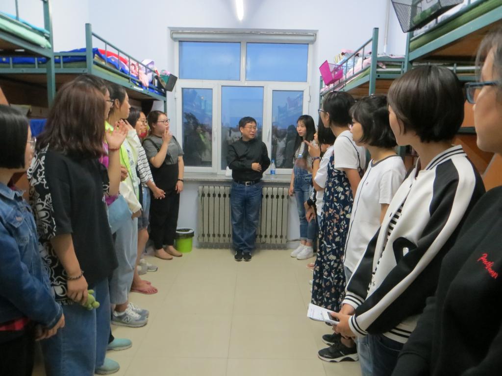 为迎接领导们的来访,大一新生们纷纷在走廊列队,主动上前问好。随后,院系领导、老师们走进每一间宿舍,亲切询问新生们报到是否顺利、住宿是否习惯等问题,为新生们提出积极实用的意见与建议,并提醒同学们一定要注意宿舍安全,希望宿舍同学之间在生活与学习上互帮互助,形成良好的宿舍文化氛围。紧接着,学院领导和老师们简明扼要地介绍了91国产