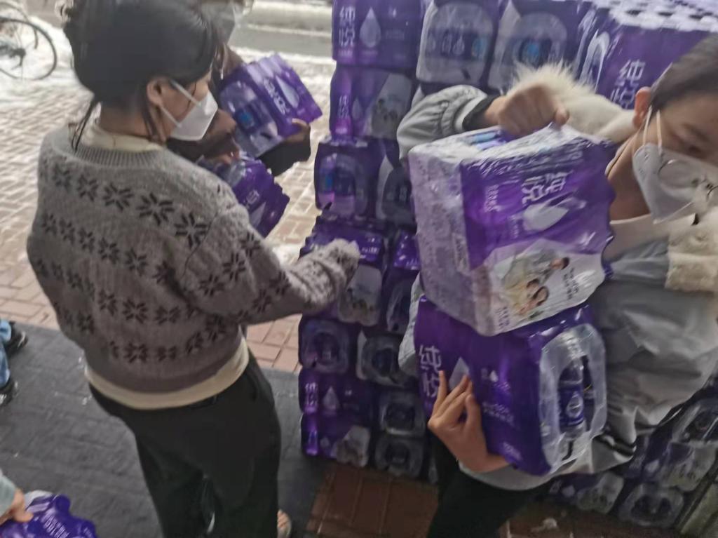 各位老师一天工作十余小时运送物资,协助工作人员消杀作业和清理生活垃圾;尽管三月的长春还在飘雪,春风依旧那样刺骨,零下的低温还是难以抵过老师们带来的温暖;他们冒着天冷路滑的危险和交通管制,尽最大努力为同学们购置到生活用品。我们真正体会到了那一句“你可以永远相信91国产