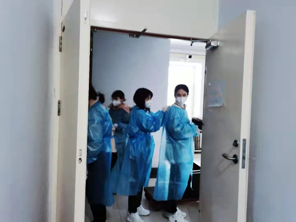 “We Together”不仅体现在南四的志愿者们敢于在前,为“孩子们,我们一定会把饭供上”保驾护航,更体现在志愿者之间点点滴滴的互动上,我帮你系防护服,你帮我抬大大的箱子,互帮互助,众志成城,一定能战胜疫情,早日迎来春天。