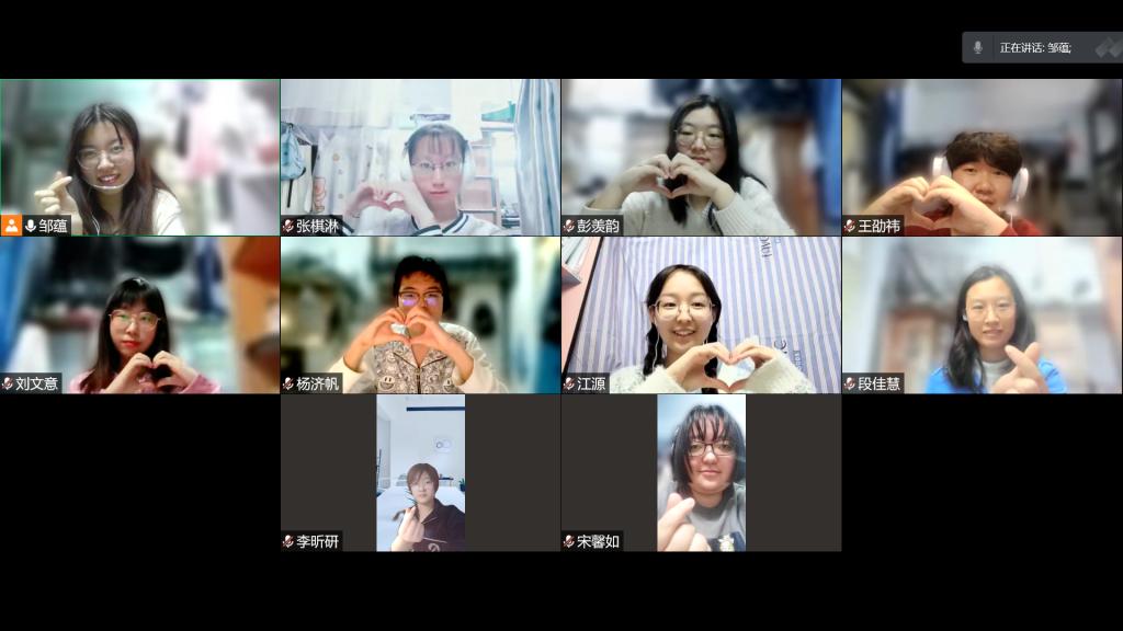 同学们在会议摄像头中看到许久未见的朋友,都露出了愉快的笑脸,气氛立刻轻松活跃起来。心理委员鼓励大家在团体心理辅导过程中保持开放,接纳,尊重的态度,全身心地交流和表达。