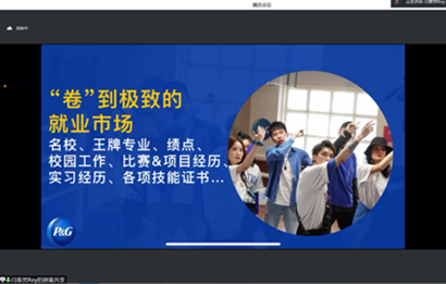 2013级本科生毕业生,现任宝洁公司市场策略与计划部高级项目经理闫泰男就“从校园到职场,我该做哪些准备”进行求职经验分享。会议由学工办主任刘畅老师主持。