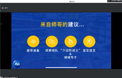 接着,闫师兄以如今“内卷”的就业市场作为切入点,向同学们强调大学期间学习成绩、工作实习经历、各类参赛获奖证书等对未来竞争的重要性,并以自己参加商赛的经历为例,为同学们提供了一些参考和借鉴。