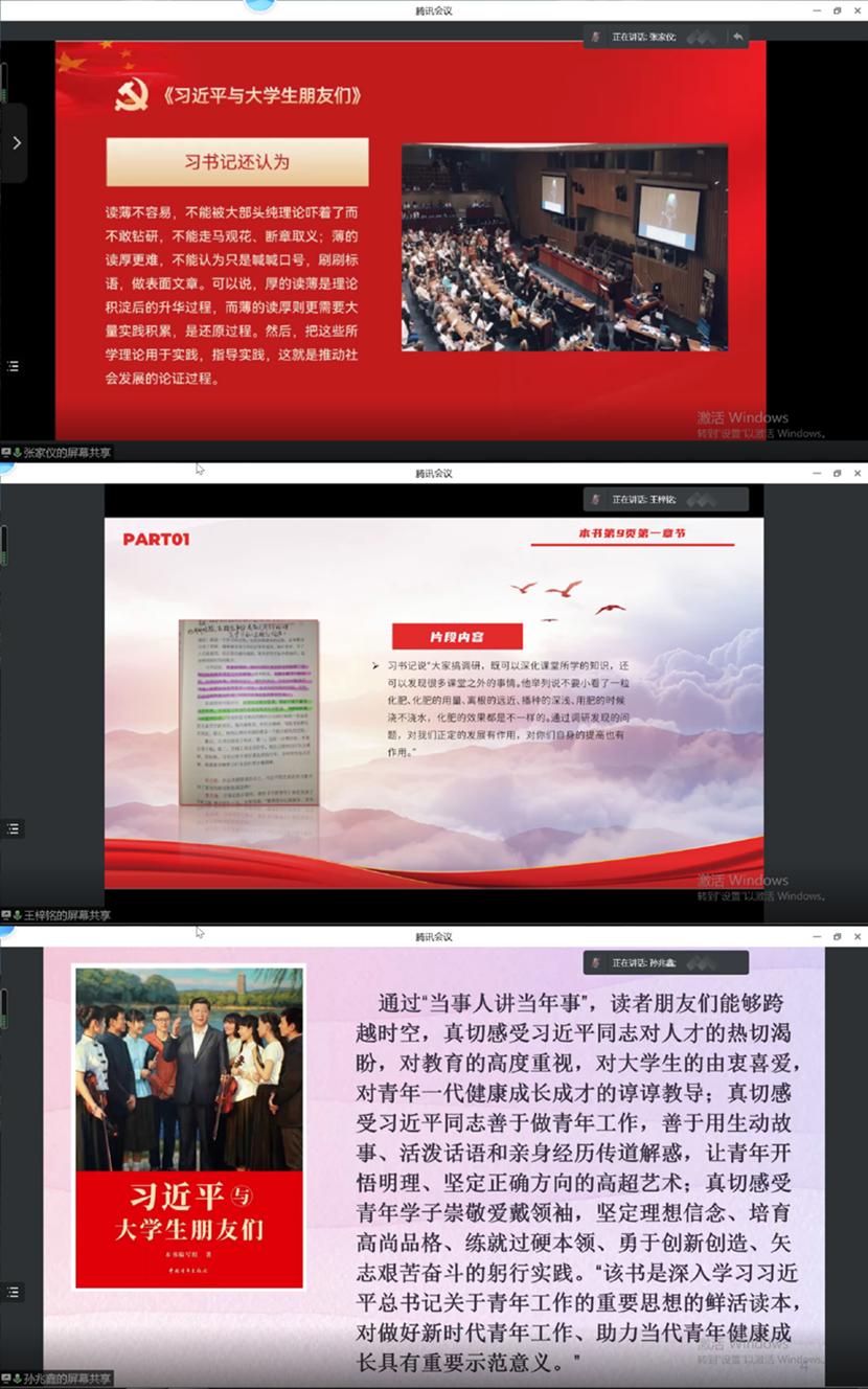四月的长春,草木初萌、花枝出蕾。在疫情防控进入决战决胜的关键阶段,2022418日晚21时许,由团委新时代理论宣讲团组织的《习近平与大学生朋友们》线上精读活动如期召开。本次活动由新时代理论宣讲团成员2020级裴璐晓同学和郭毅同学主持,学院2019级、2020级和2021级本科生出席了本次活动。