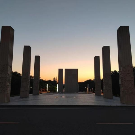 7.从报到的东门进入,在五月花广场中央,是我们林立的校歌碑!