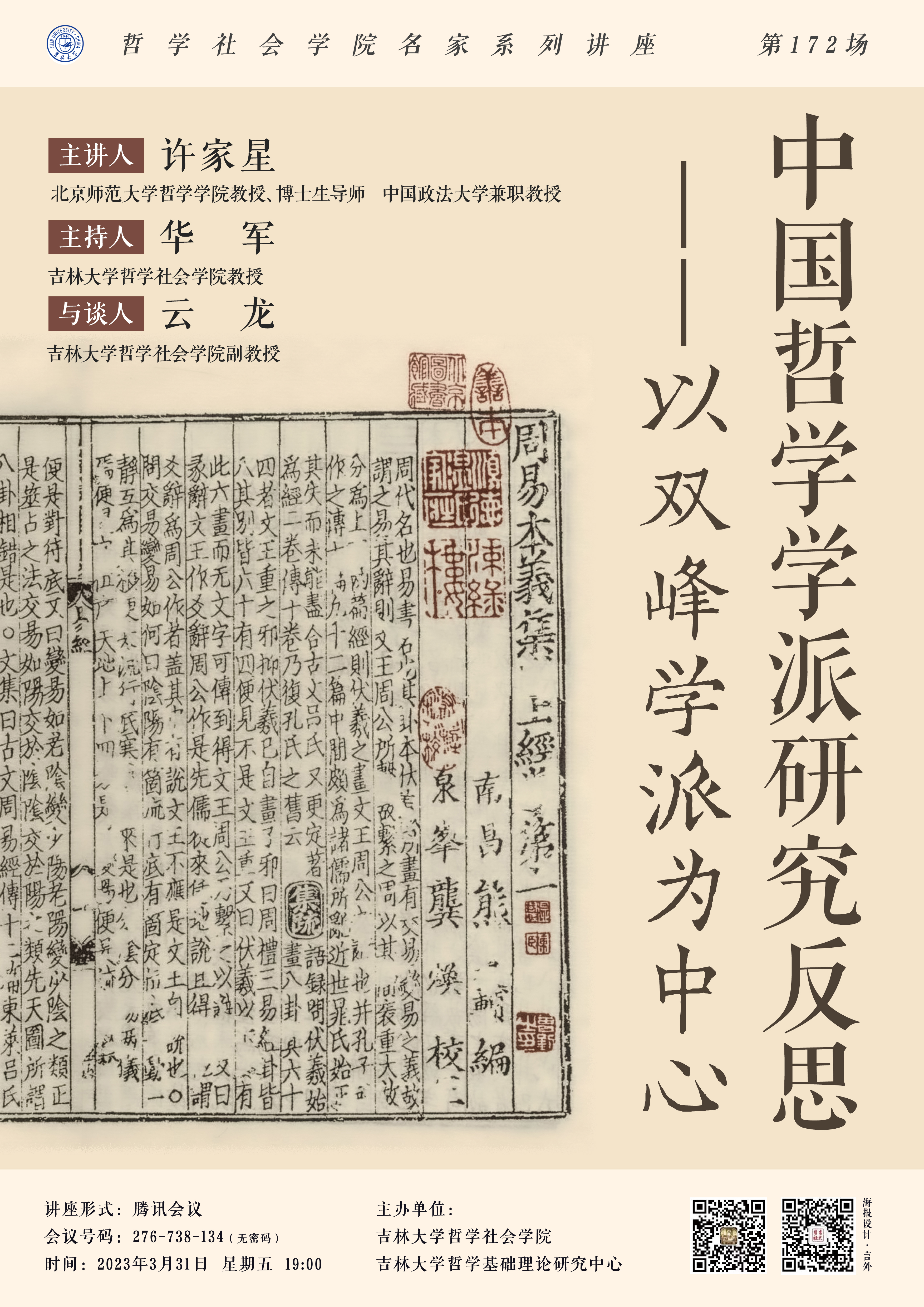 【91国产 名家系列讲座第172场】许家星:中国哲学学派研究反思——以双峰学派为中心