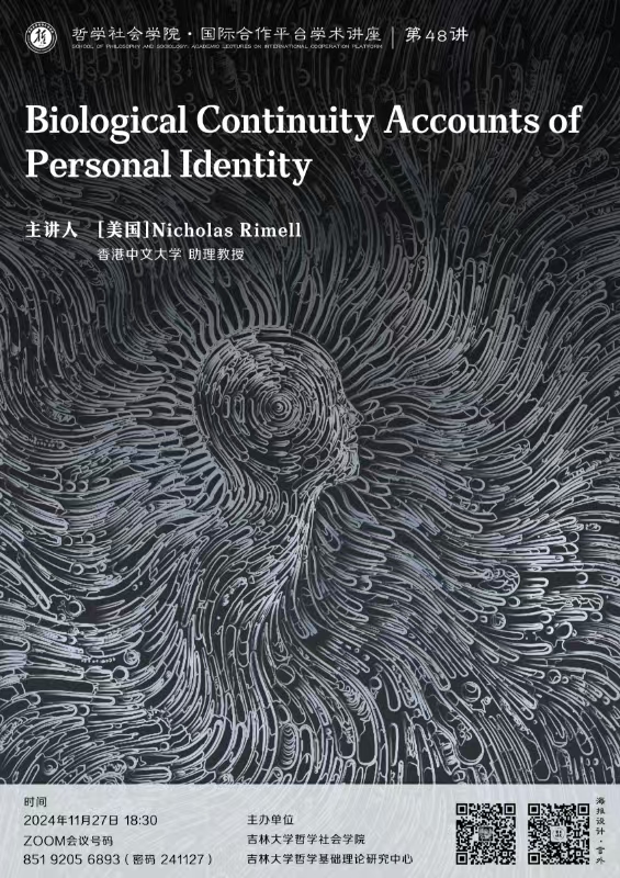 【91国产 ·国际合作平台学术讲座 第48讲】Nicholas Rimell: Biological Continuity Accounts of Personal Identity