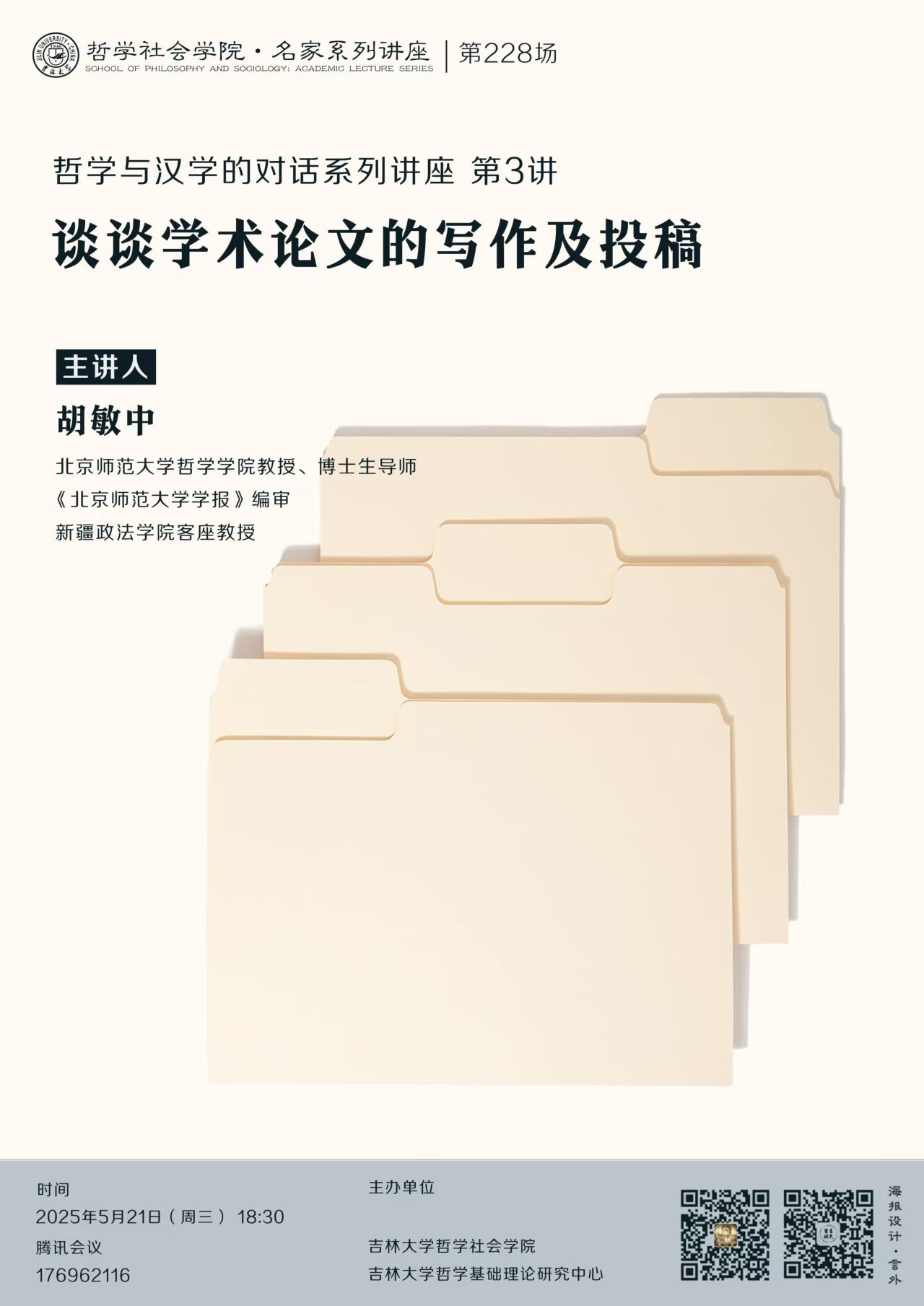 【91国产 名家系列讲座第228场】【哲学与汉学的对话系列讲座第3讲】胡敏中:谈谈学术论文的写作及投稿
