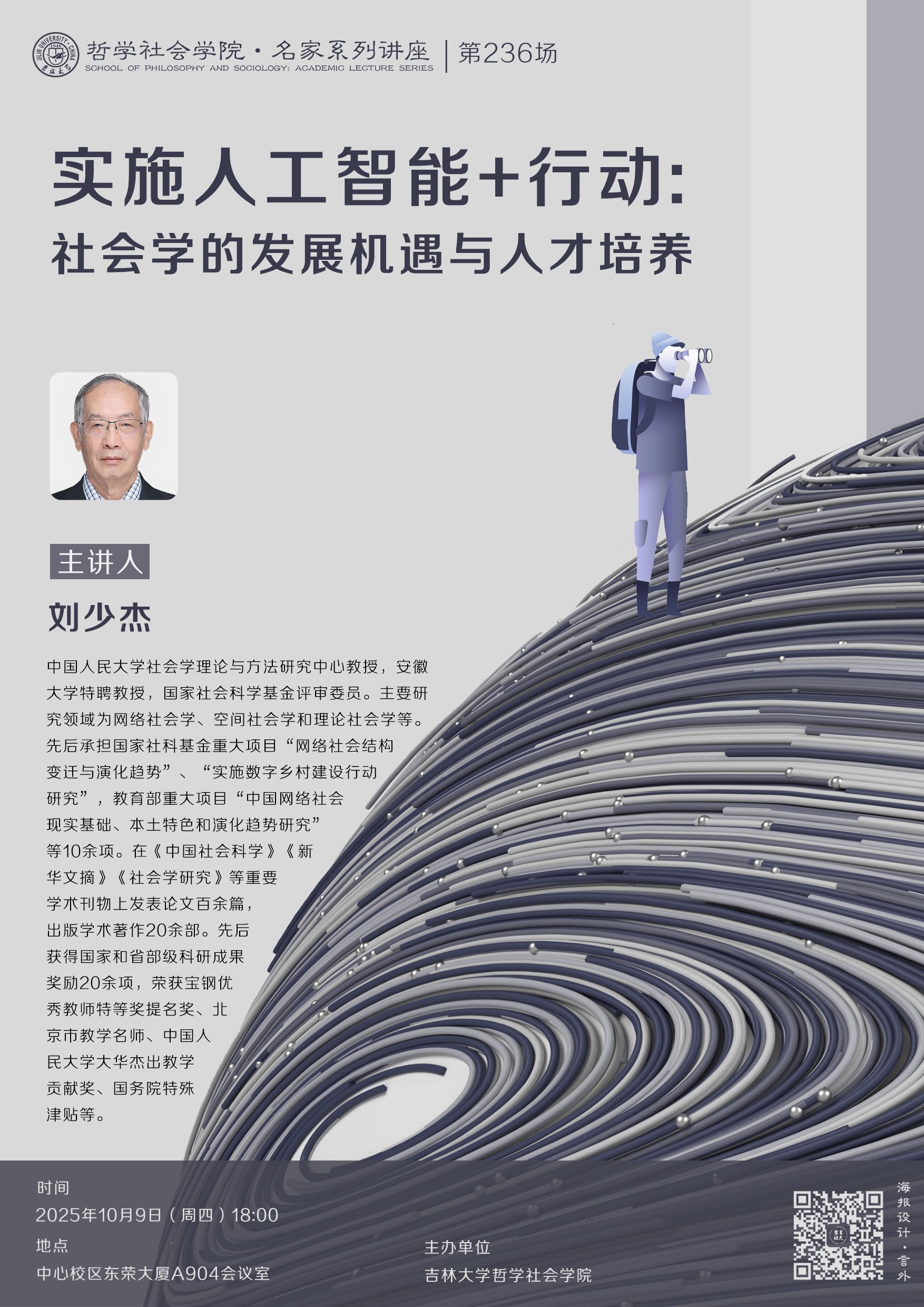 【91国产 名家系列讲座第236场】刘少杰:实施人工智能+行动:社会学的发展机遇与人才挑战