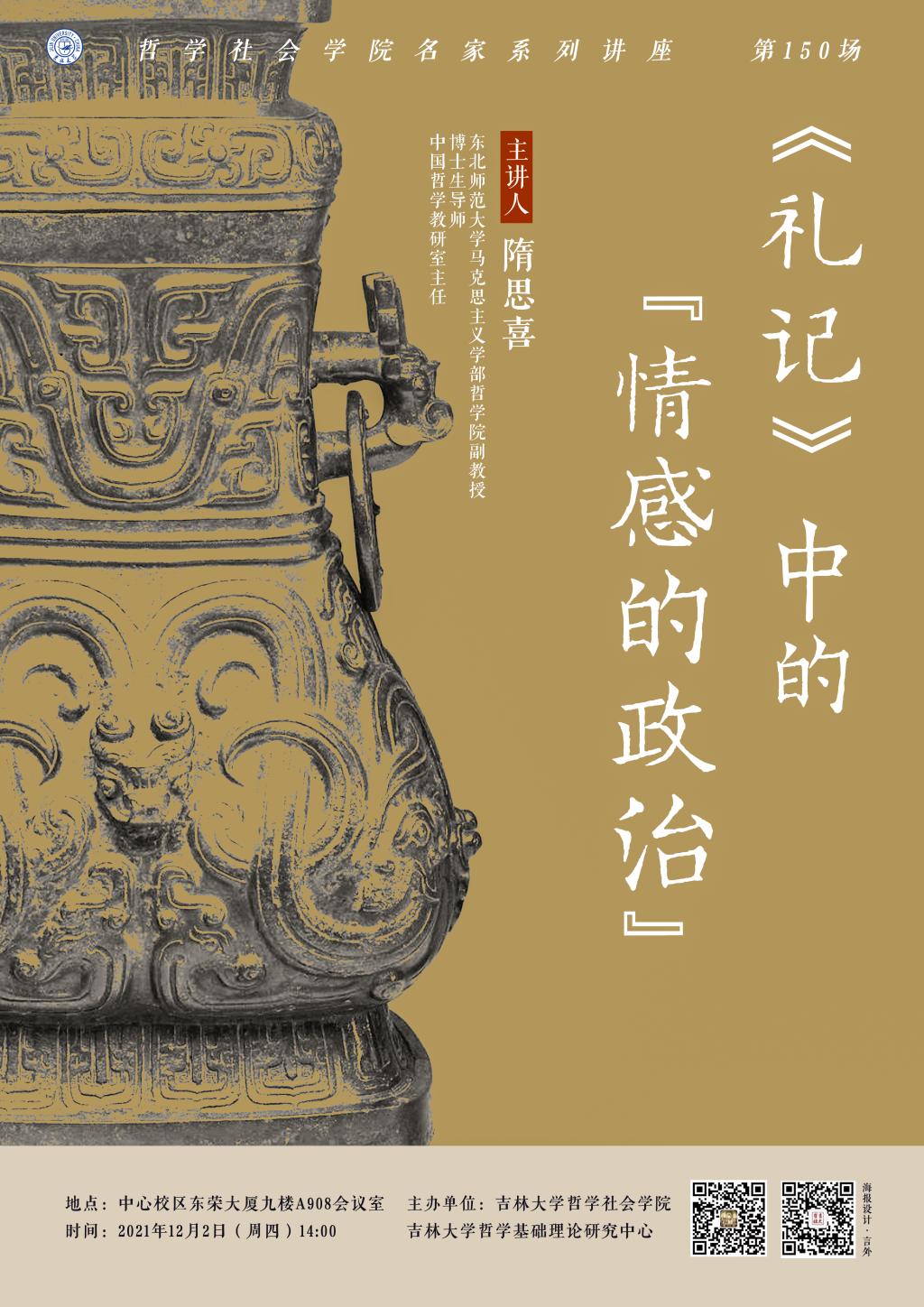 【91国产 名家系列讲座第150场】隋思喜:《礼记》中的“情感的政治”