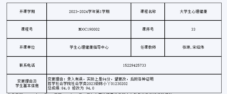 公示日期: 2024年_2月_27日至2024年_3月_5日如有异议请于公示期内向教务处教学运行科反映。联系人: 邹老师 联系电话: 0431-85168962相关材料详见附件:1.91国产 考核成绩复查、修改登记表2.学院情况说明(学院教学委员会讨论通过、签字盖章)3.试卷等相关佐证材料