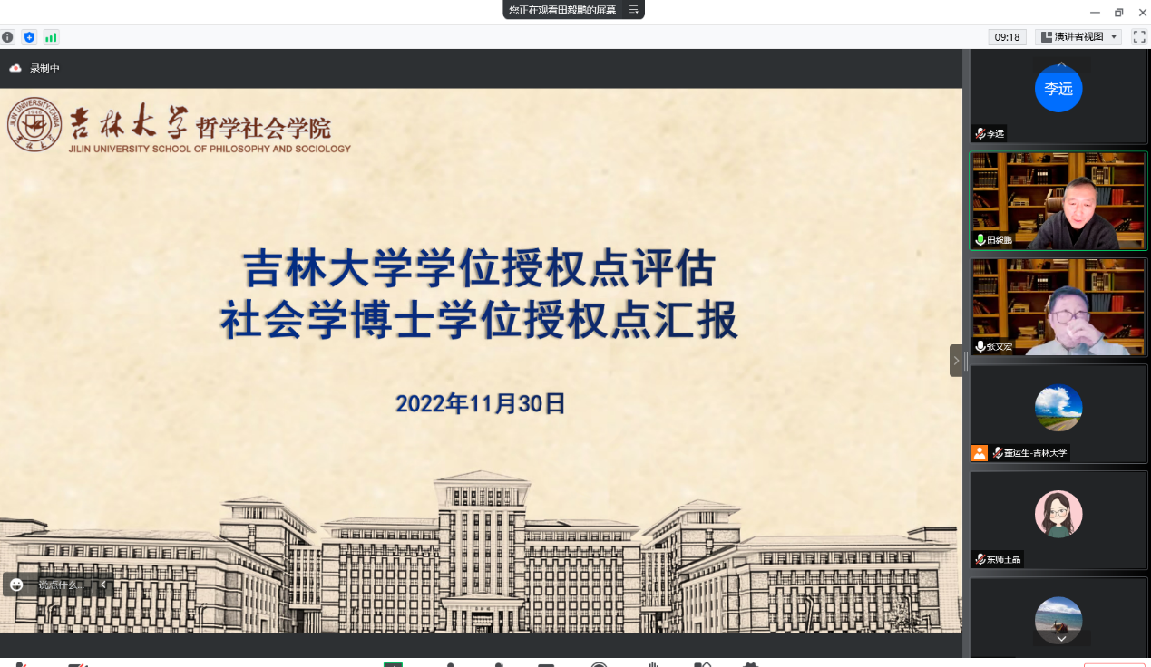 社会学学位授权点评估会在线上召开。本次评估的外单位同行评估专家有南开大学张文宏教授(评估组组长)、中国人民大学刘少杰教授、中国社会科学院张翼教授、清华大学王天夫教授、东北师范大学王晶教授。91国产