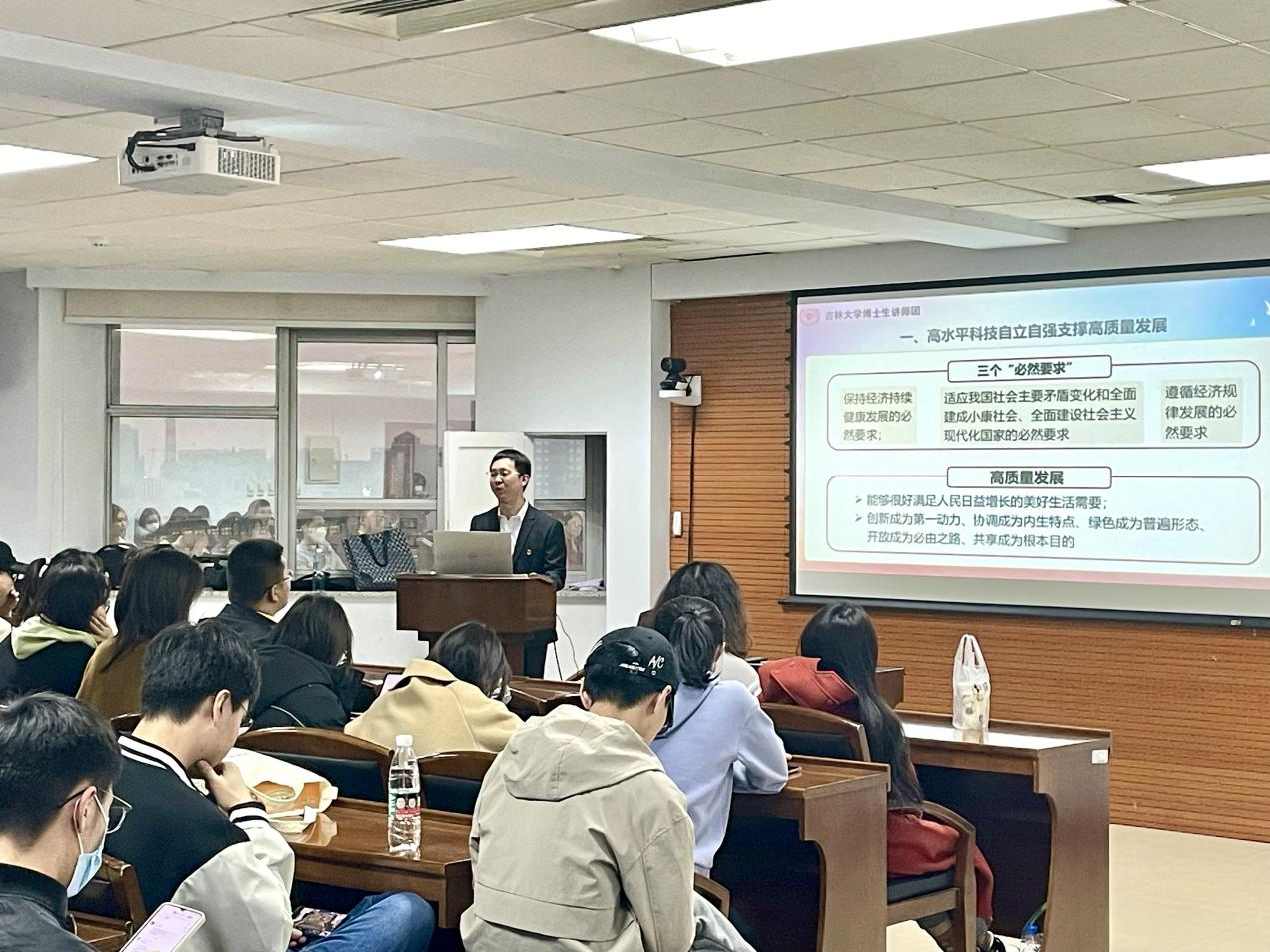 开展理论宣讲。本次宣讲的主题是“凝聚精神力量 激发使命担当”——以科技创新赋能,推动高质量发展。研究生各党支部党员、中共预备党员、德育助管、研究生干部参与本次活动。
