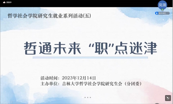 开展研究生就业指导系列第五期活动——哲通未来 “职”点迷津 申博经验分享会。学院研究生会(分团委)全体成员及各年级研究生参加会议。