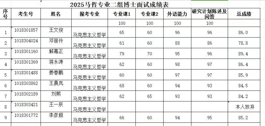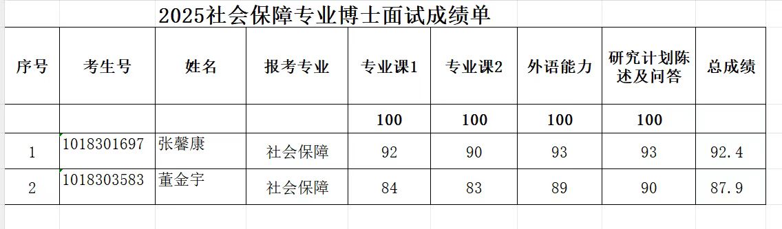 2025年硕博连读及博士申请考核复试成绩参见图片