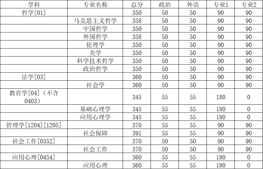 三、各专业复试分数线: