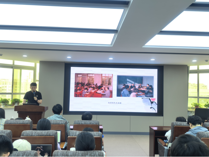 尚坤同学以“北望有思,志在远行”为主题,详细地解读了高清海教授的生平事迹。他从风雪淬玉骨、惊雷破冻土、孤舟渡沧海、薪火传文脉、哲思耀星河五部分入手,深入剖析了高清海先生的北上精神。“北上精神”承载着先辈们坚定的信仰、坚韧的意志和无私的奉献,是激励当代青年奋勇向前的宝贵精神财富。尚坤同学强调,广大研究生应将“北上精神”融入学习和生活,将其转化为克服困难、追求卓越的强大动力。