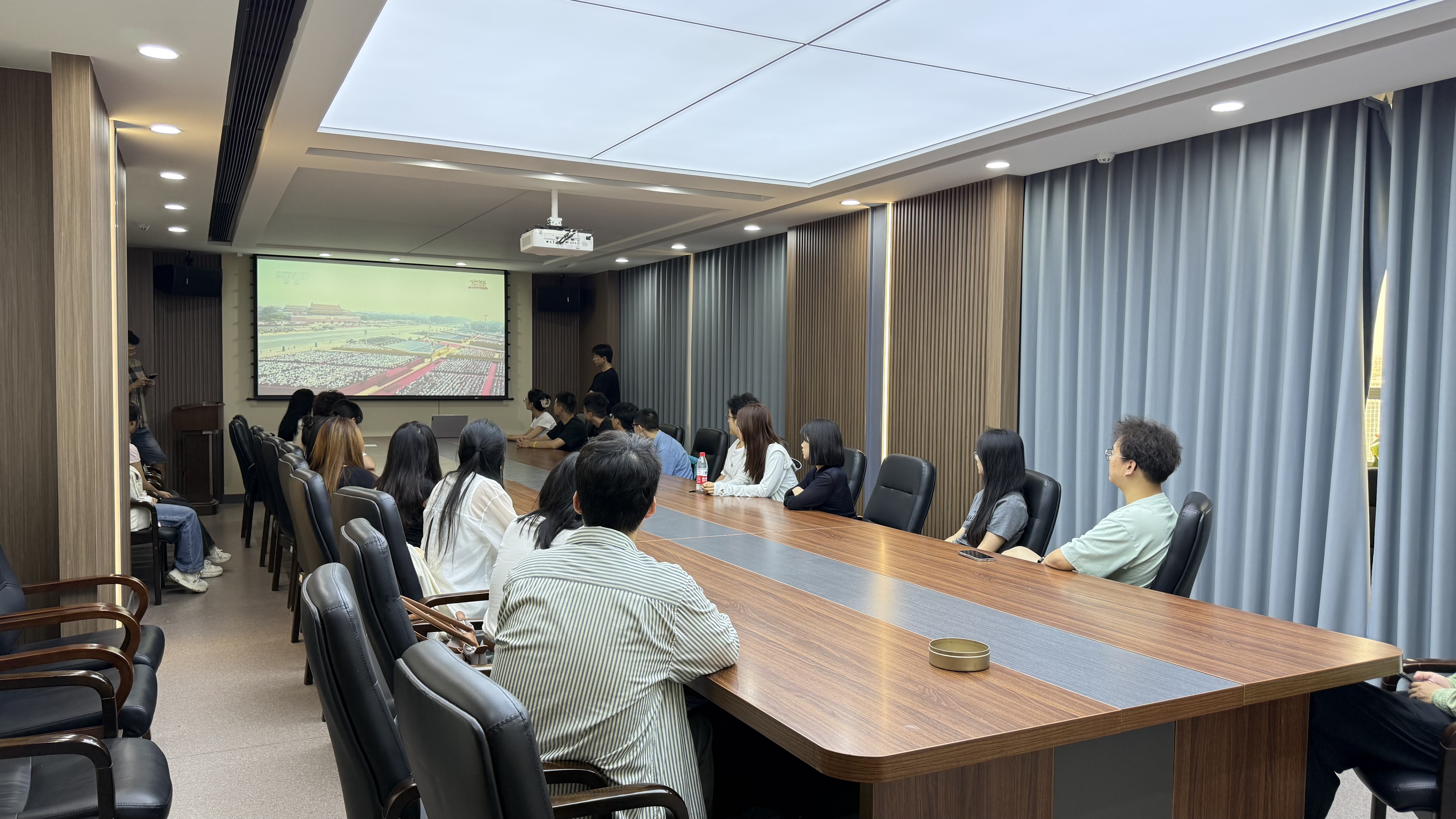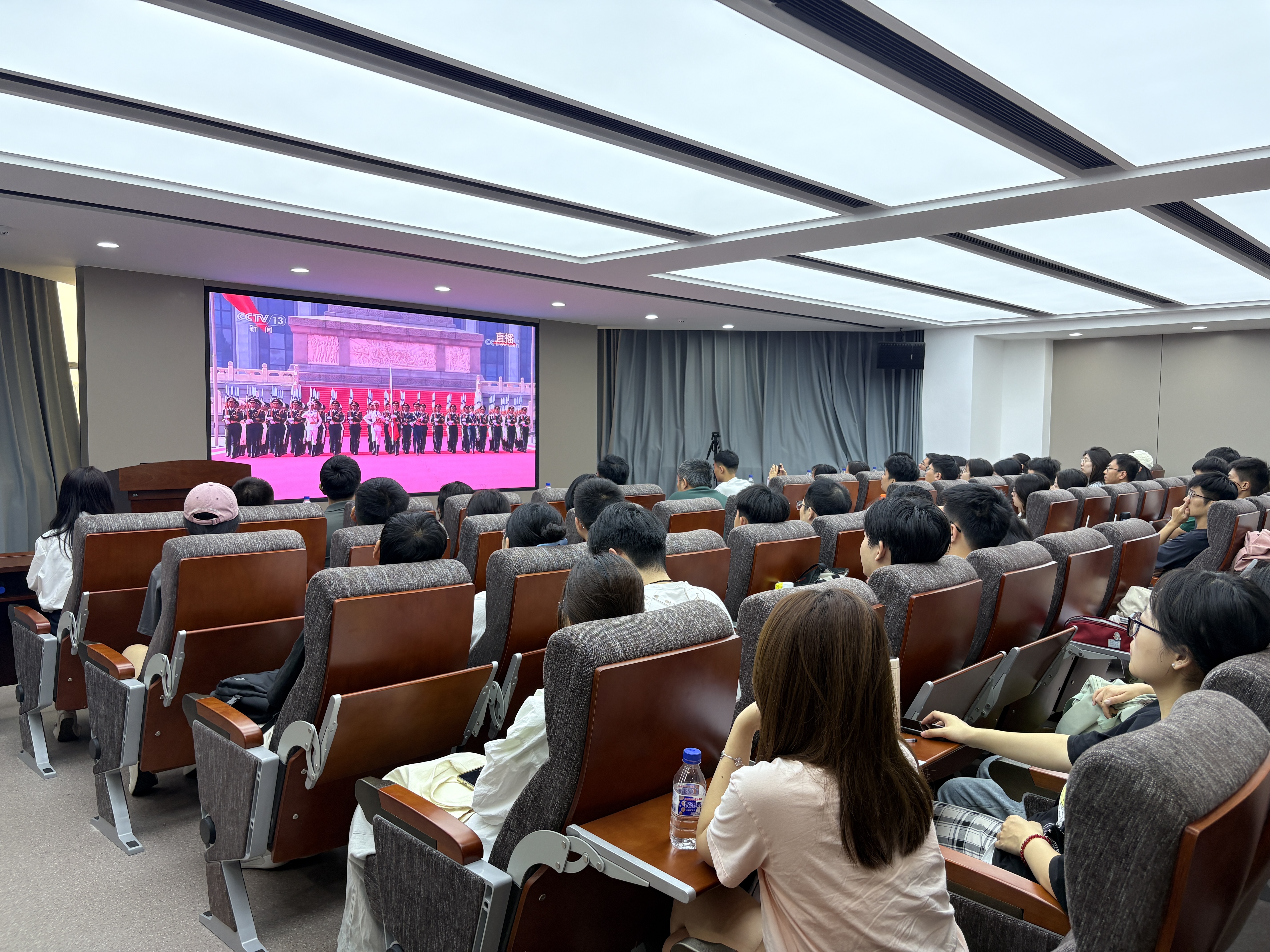 在东荣大厦904、908会议室组织教师代表、2025级研究生新生代表集体观看“纪念中国人民抗日战争暨世界反法西斯战争胜利80周年大会及阅兵式”。