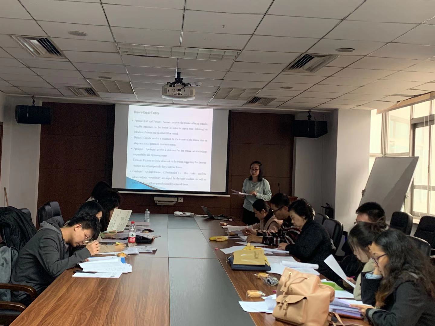 涂崇玉同学首先依托于所报告的文献“An Examination of Psychological Contract Breach Repair Tactics”,详细的介绍了心理契约破裂以及心理契约破裂后的六种修复策略,并围绕着六大策略为大家进行了深入浅出的分析。随后,在场的同学也对心理契约破裂领域的相关研究内容表达了自己的观点。报告结束后, 黄冬梅教授从研究方法、研究范式、研究前瞻性以及理论等方面对此次报告进行了系统的点评,让在座同学受益匪浅。最后,在丁一凡同学的主持下,大家进行了热烈的讨论,同学们均表示希望未来有更多参与心理学学术报告的机会,并再次对主讲人和评论人表达了感谢。在一片和谐的氛围中,本次报告会落下帷幕。