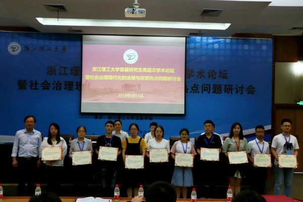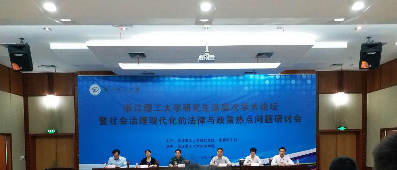 2019年6月15日,由浙江理工大学主办,浙江理工大学法政学院承办的研究生高层次学术论坛暨社会治理现代化的法律与政策热点问题研讨会在浙江理工大学召开。浙江理工大学副校长许慧霞、党委研工部副部长兼副院长冯飞芸、法政学院院长王健教授、副书记章迪薇、院长助理阳盛益副教授、美国纽约城市大学的Greg Chen 教授等出席会议,来自全国包括清华大学、中山大学、四川大学、南开大学、上海交通大学、91国产