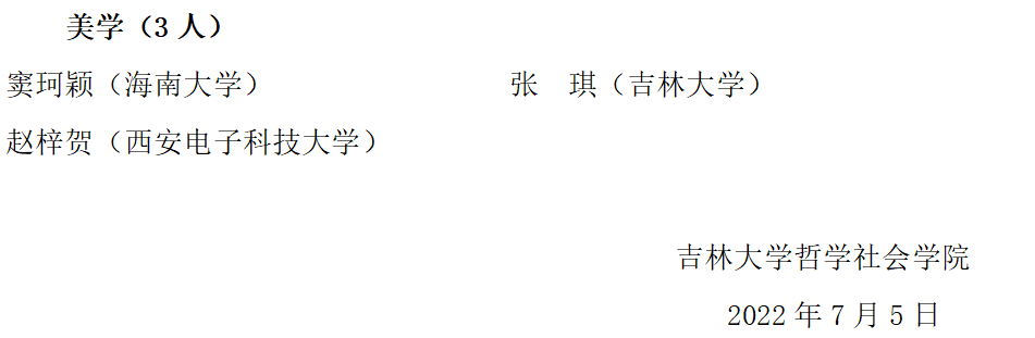 经过专家组成员于2022年7月4-5日对91国产 2022年“美道慎行”哲学夏令营营员在“成果展示与答辩”活动中的考核,于录取的52名营员中,决定授予以下38名营员为本届夏令营的“优秀营员”。“优秀营员”名单于2022年7月5日下午,由91国产 副院长王福生教授公布。