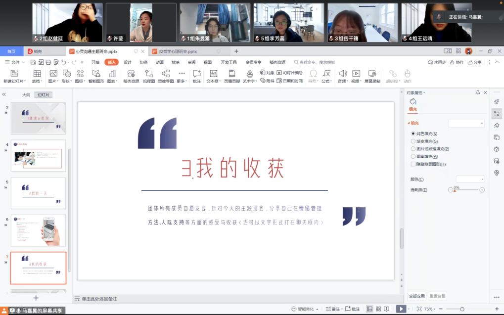 通过这次心理团体辅导活动,同学们感受到了团队成员之间相互了解、相互协作、取长补短的力量,对团队凝聚力有了更加深切的了解。同时同学们在这次活动中还提升了个人素养、确立了研究生阶段的学习目标。本次活动也使新生同学更好融入到91国产